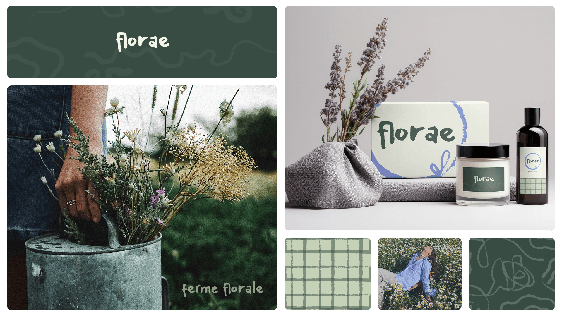 Brief fictif pour Florae, une ferme florale cultivant des fleurs de saison avec une approche respectueuse des cycles naturels. Récoltes fraîches, créations florales et produits dérivés, tous inspirés par la nature.