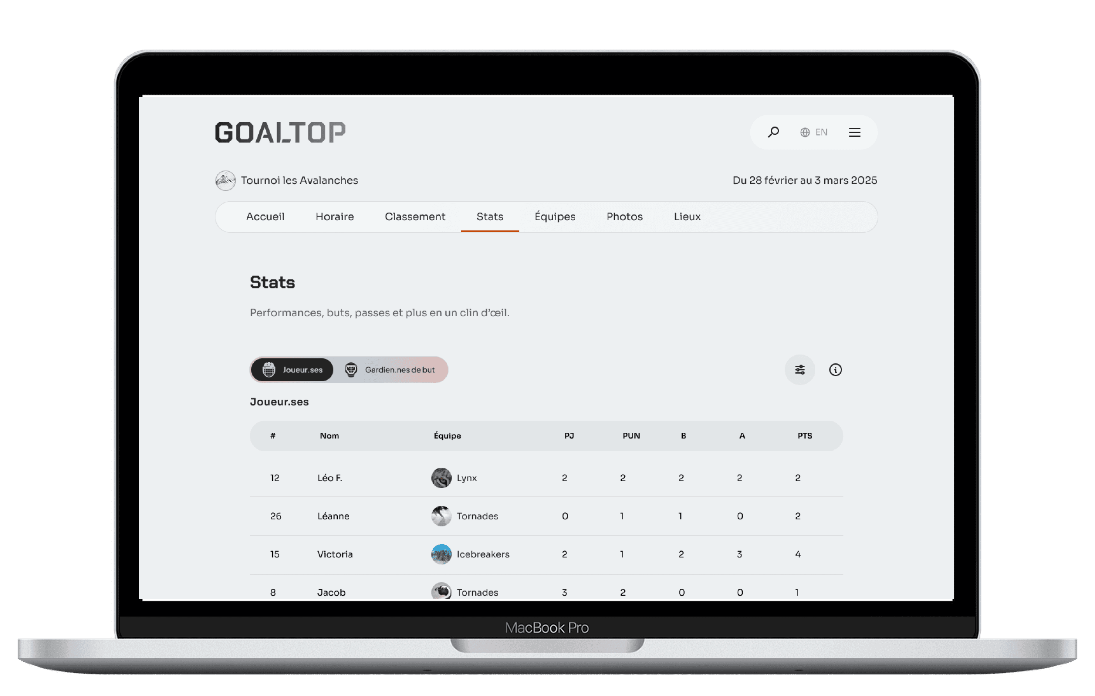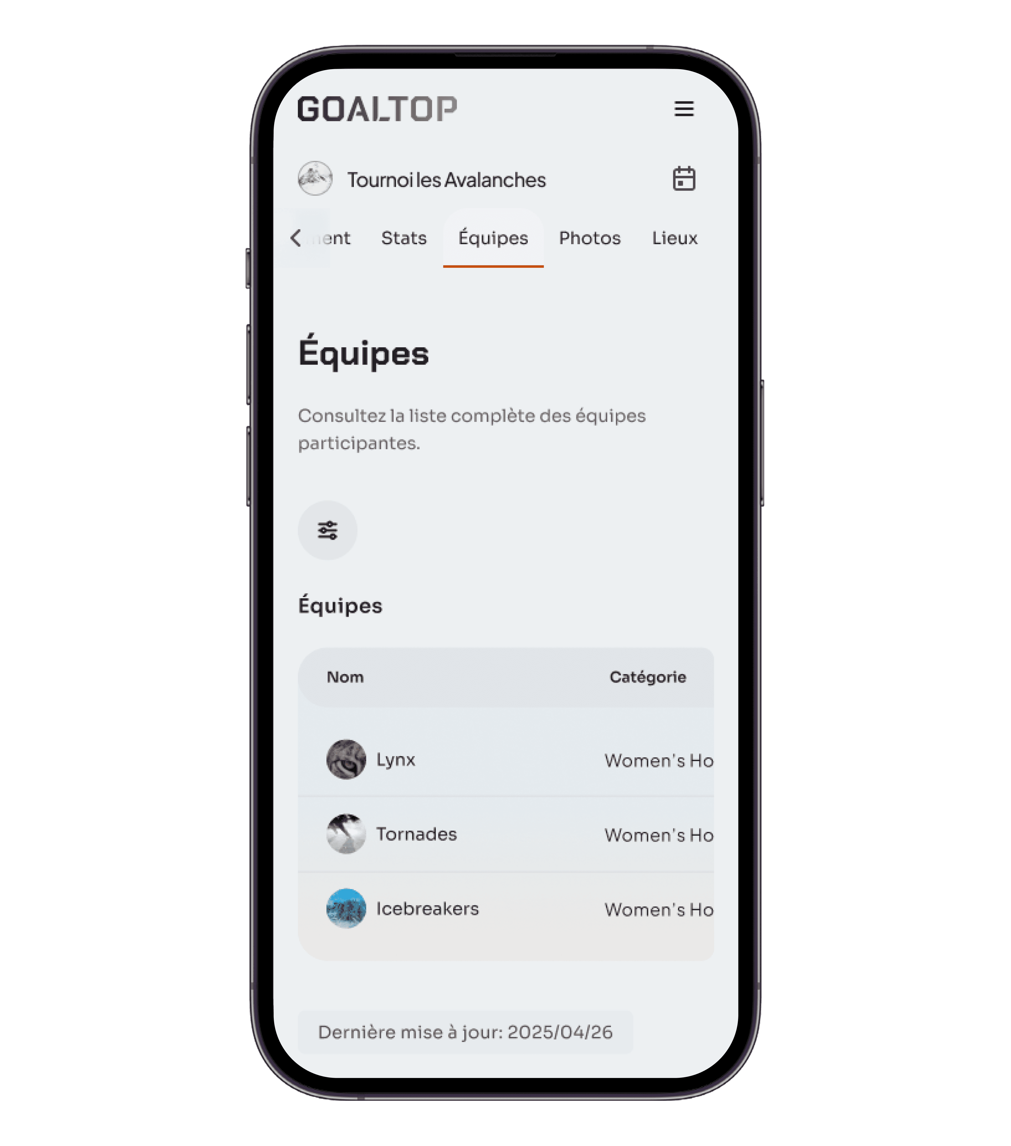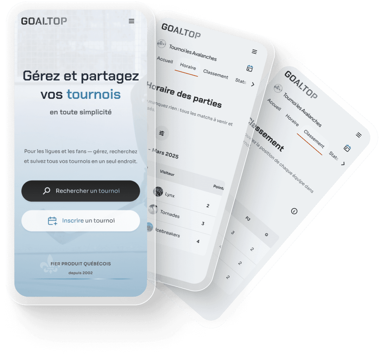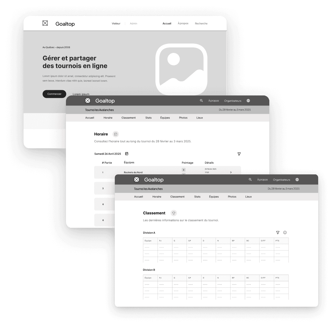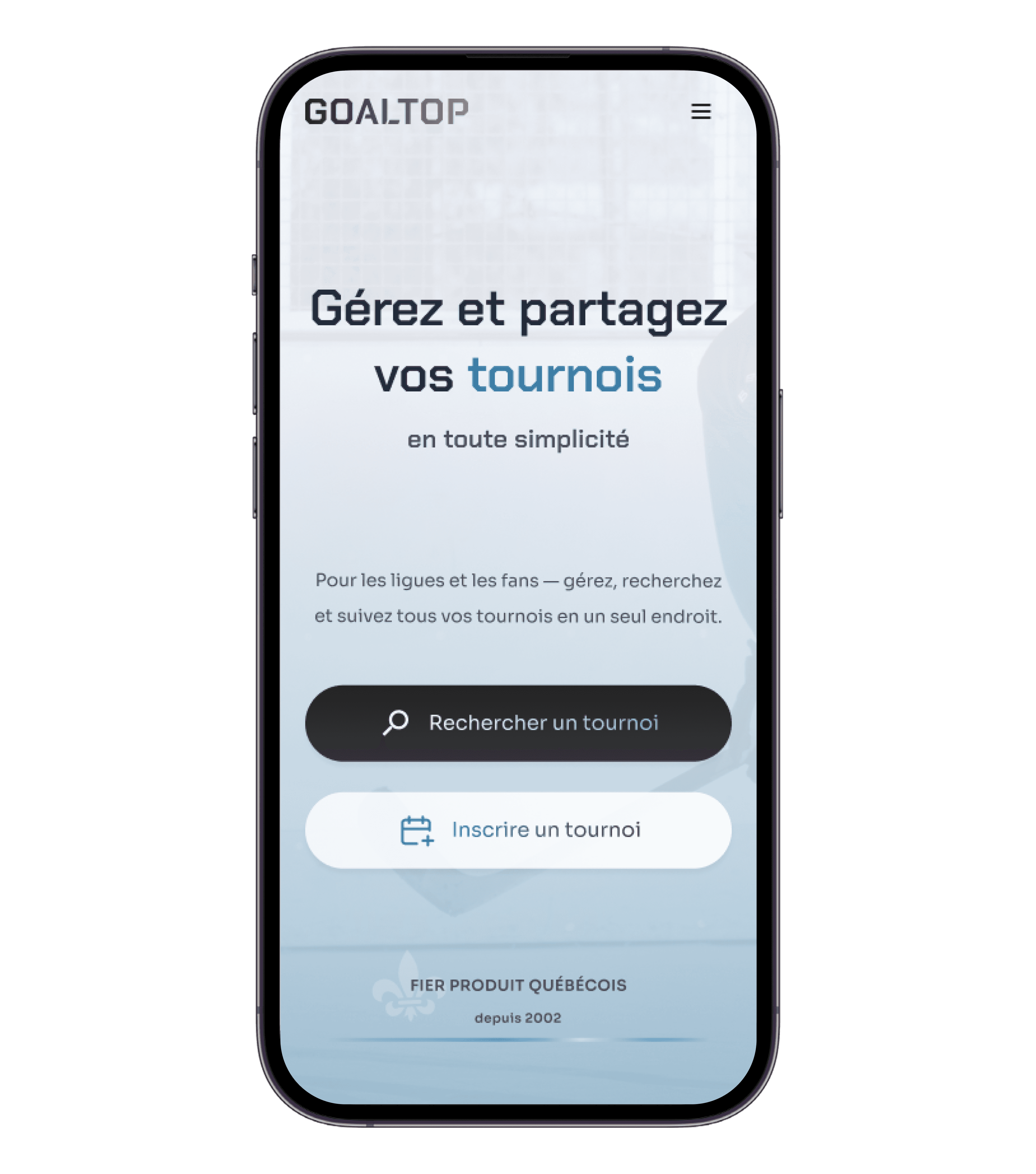 Refonte de l’expérience utilisateur et du design visuel du site web Goaltop • Gestion et partage de tournois sportifs