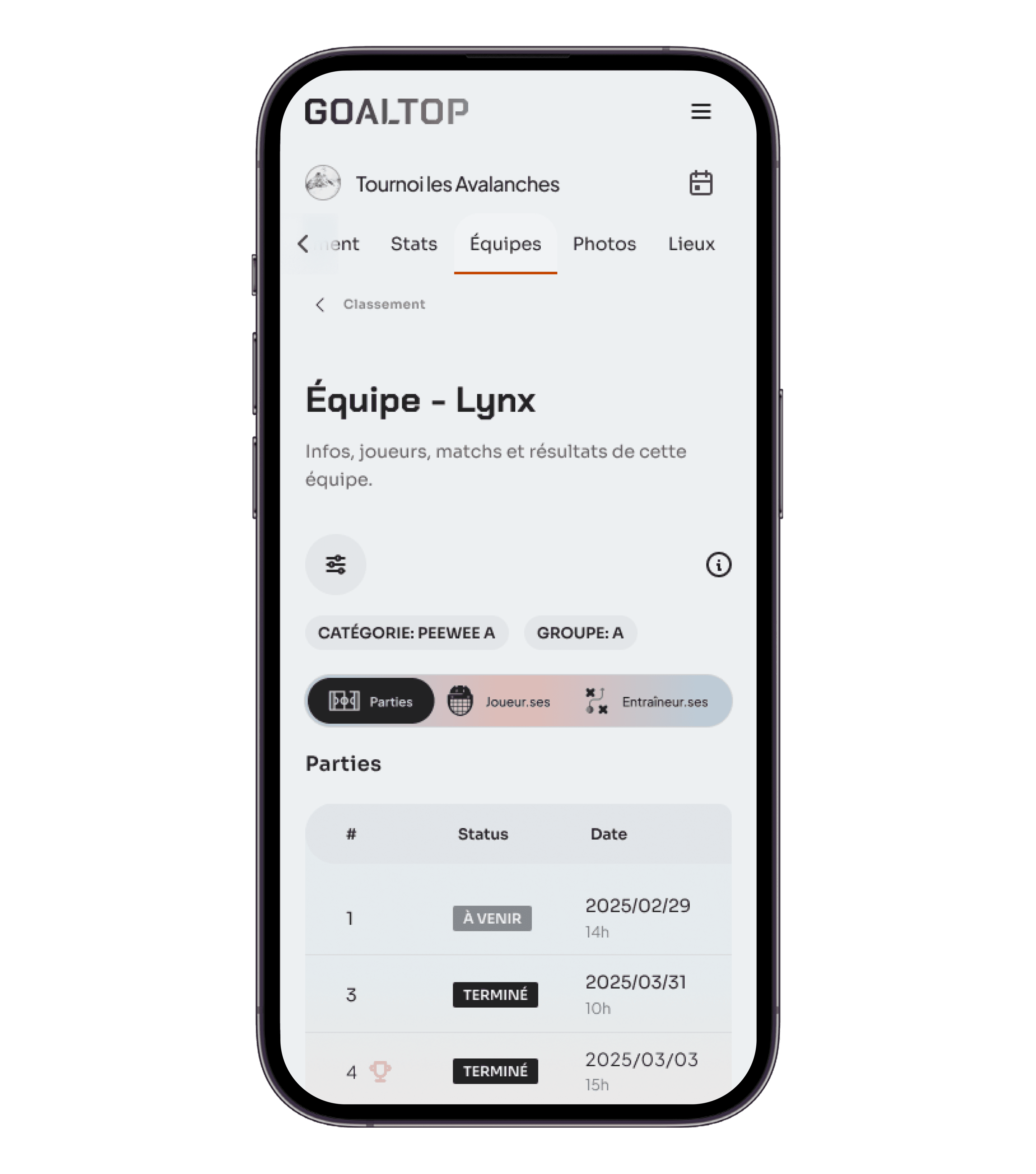 Il cherche un service accessible et inclusif pour consulter et partager de l’information sur les tournois. La ligue junior a un budget pour ce genre d’événements, et il a même offert son aide pour l’organisation.