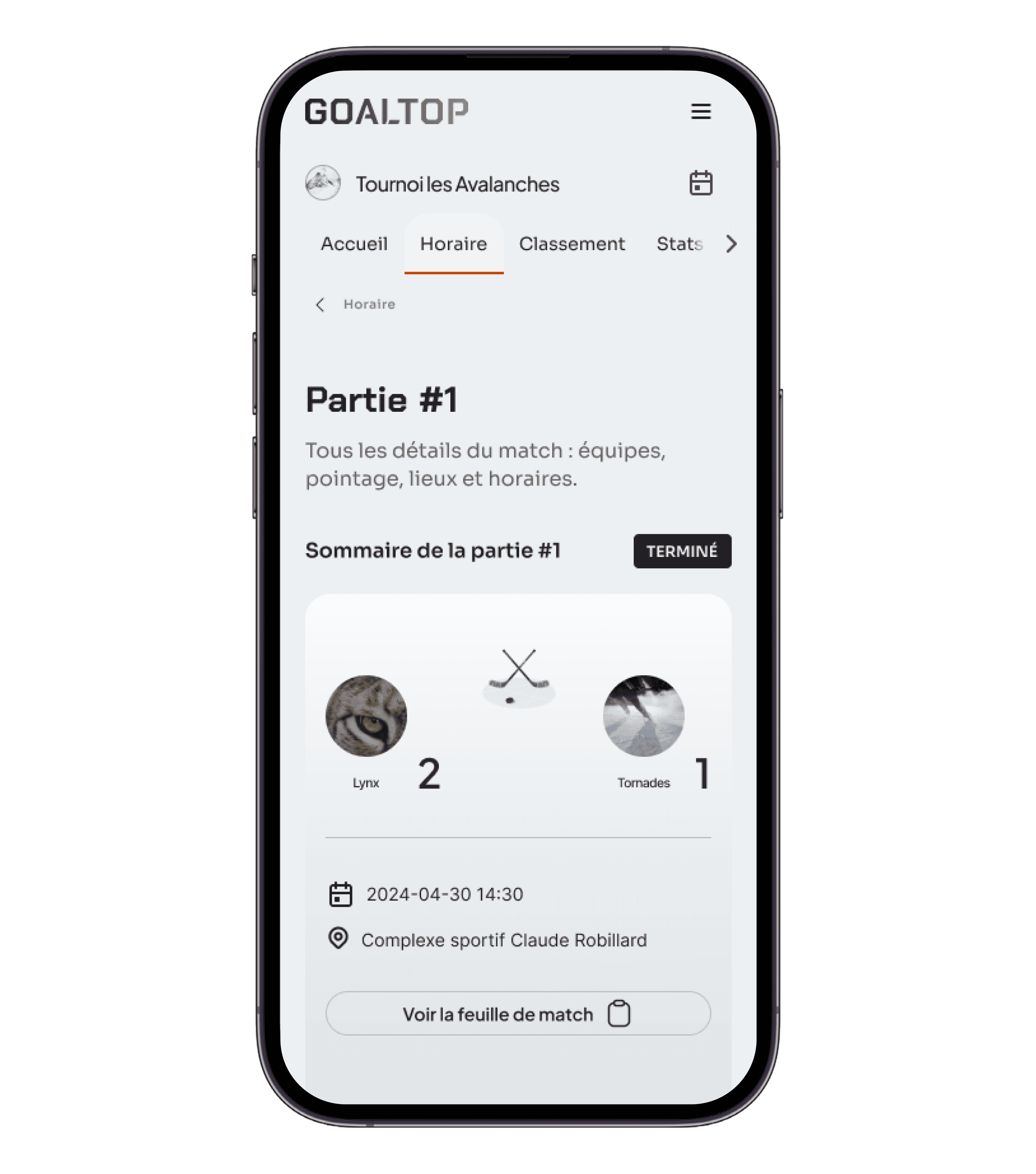 Application web offre un service de diffusion de tournois et ligues de hockey.